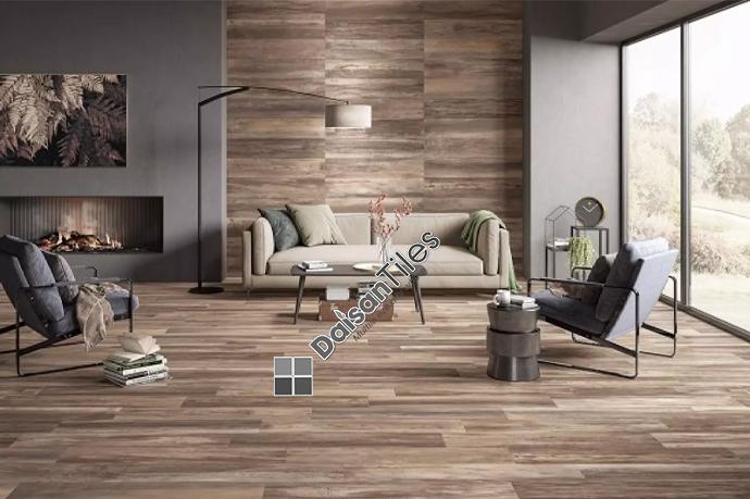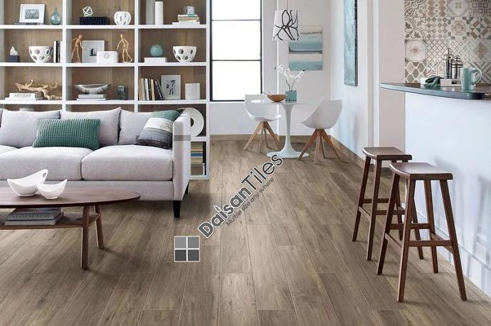 Nếu bạn là người yêu thích vật liệu gỗ, mà khả năng tài chính không phù hợp để đầu tư và sử dụng các loại gỗ từ tự nhiên, thì hoàn toàn có thể ứng dụng ốp lát gạch giả gỗ. Điều này vừa giúp bạn tiết kiệm chi phí mà vẫn đảm bảo được tính thẩm mỹ tuyệt vời cho không gian phòng khách. Gạch giả gỗ với những ưu điểm như độ bền cao, khả năng chống thấm và chống trầy xước vô cùng tốt.