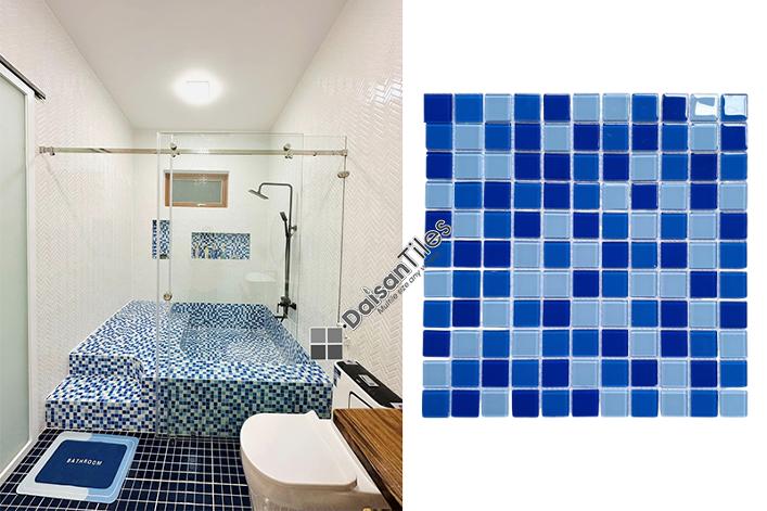 Ngoài ra, gạch Mosaic thủy tinh cũng có khả năng chịu lực tốt, chống ăn mòn và không bị phai màu. Với họa tiết bắt mắt, màu sắc đa dạng, gạch Mosaic thủy tinh thường được ứng dụng để ốp lát bể bơi, phòng tắm,...